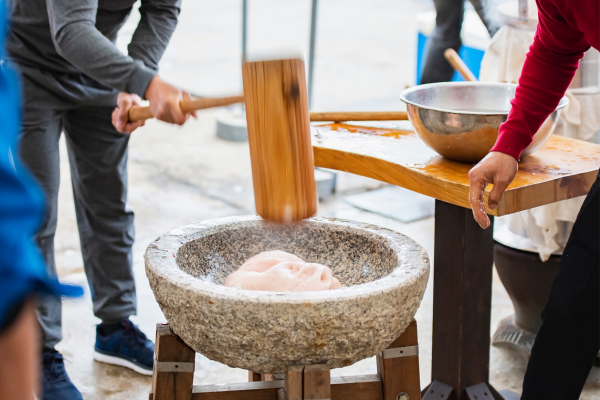 今年も1年、心身共に健康でいられますようにと願いをこめて、大きなきねとうすを使っておもちつきを行います。